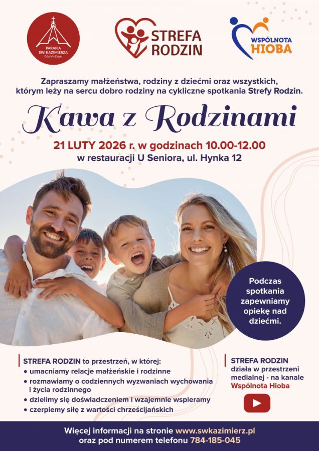 Zapraszamy na kawę z rodzinami. To pierwsze spotkanie w powstającej przy naszej parafii Strefie Rodzin. Nie trzeba się na to spotkanie wcześniej zapisywać. Wystarczy przyjść.